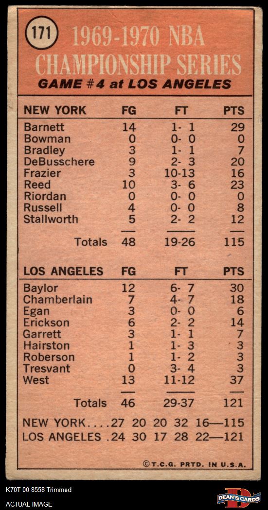 1970 Topps #171 - Jerry West 1969-70 NBA Championship - Game 4 AUTHENTIC