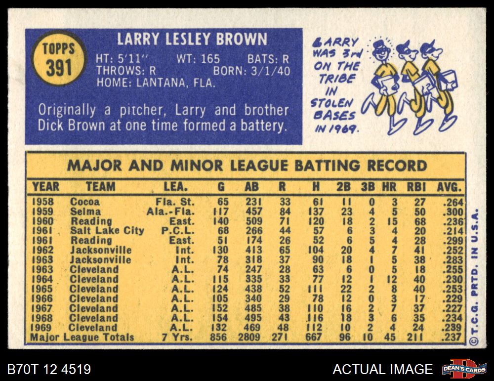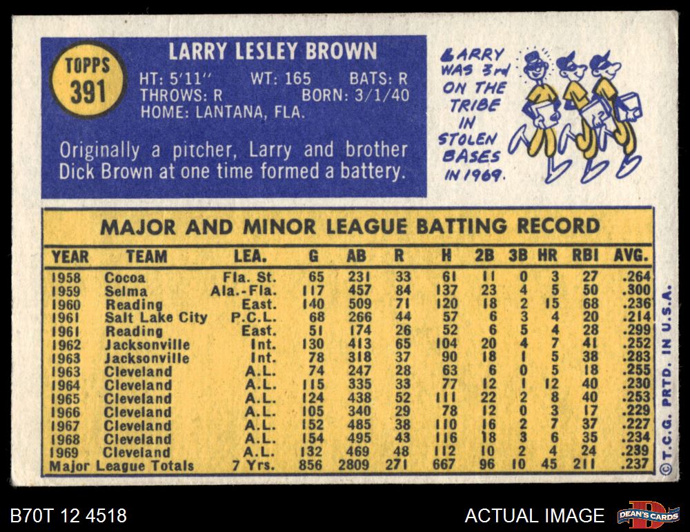 1970 Topps #391 Larry Brown 4 - VG/EX