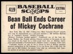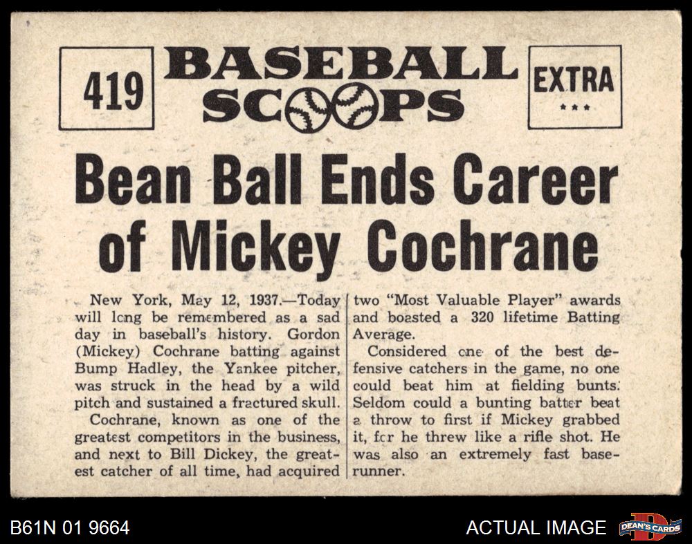 1961 Nu-Card Scoops #419 Bean Ball Ends Career