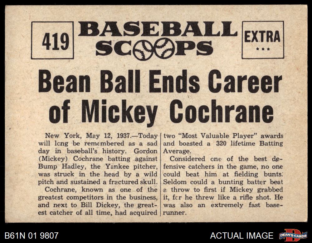 1961 1961 #419 - Mickey Cochrane Bean Ball Ends Career 6 - EX/MT