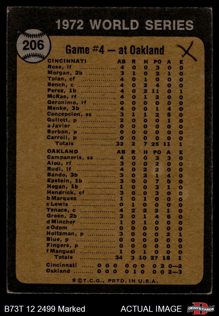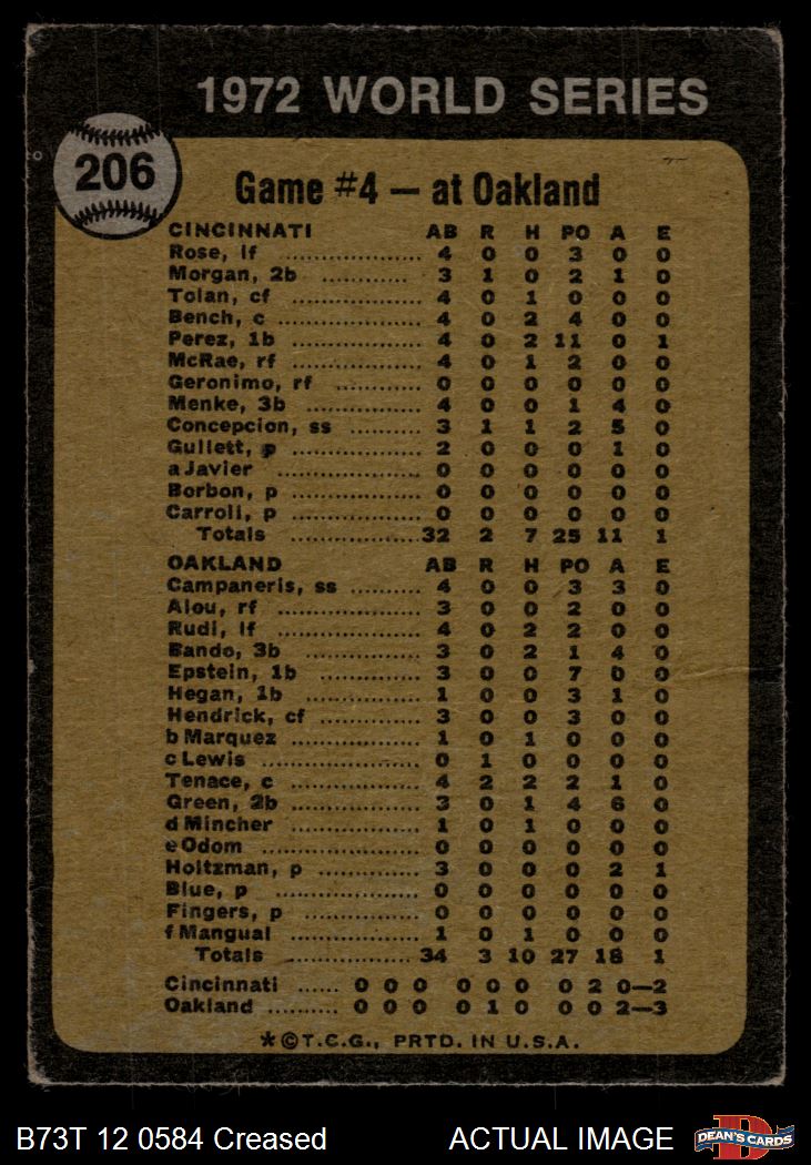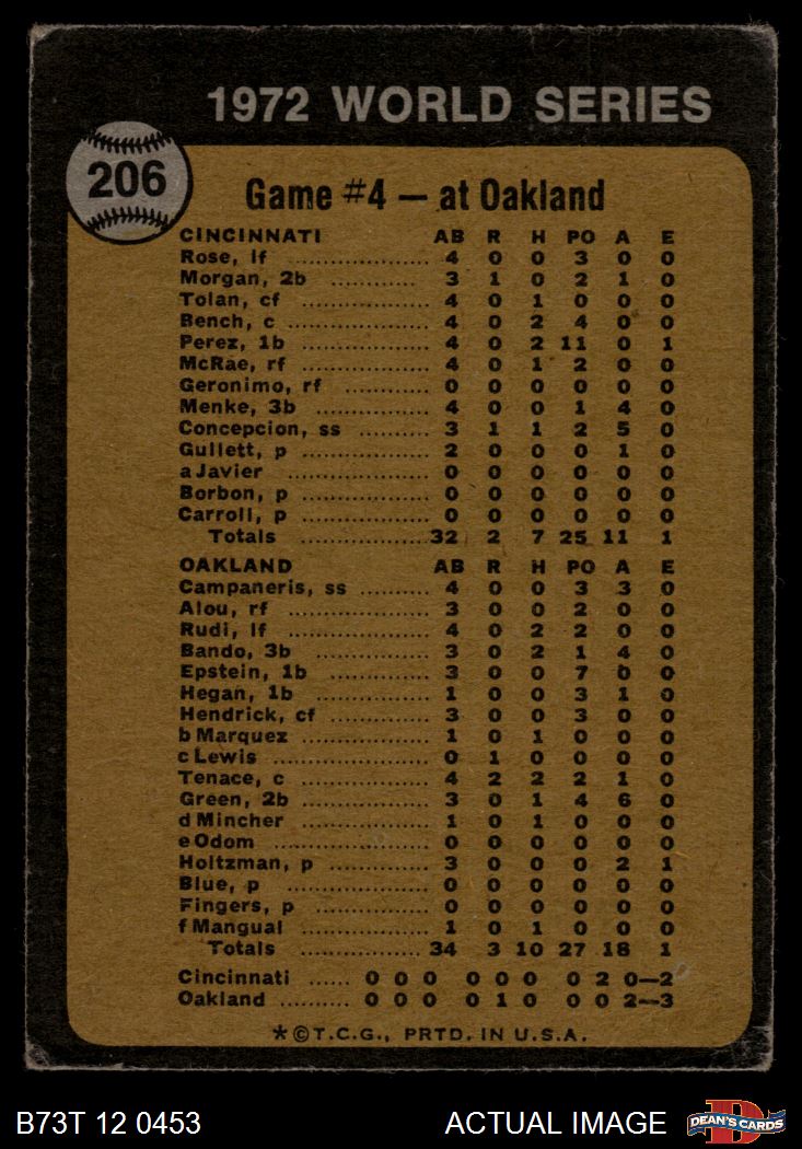1973 Topps #206 1972 World Series - Game #4 - Tenace Singles in Ninth