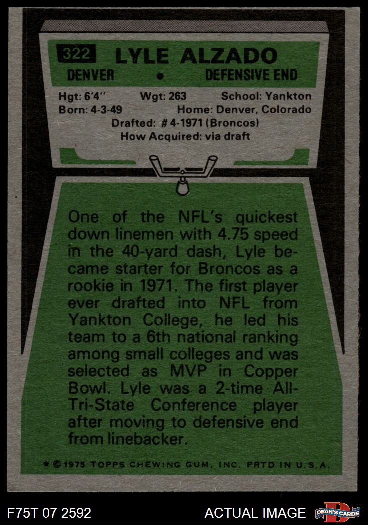 1975 Topps #322 Lyle Alzado 4 - VG/EX