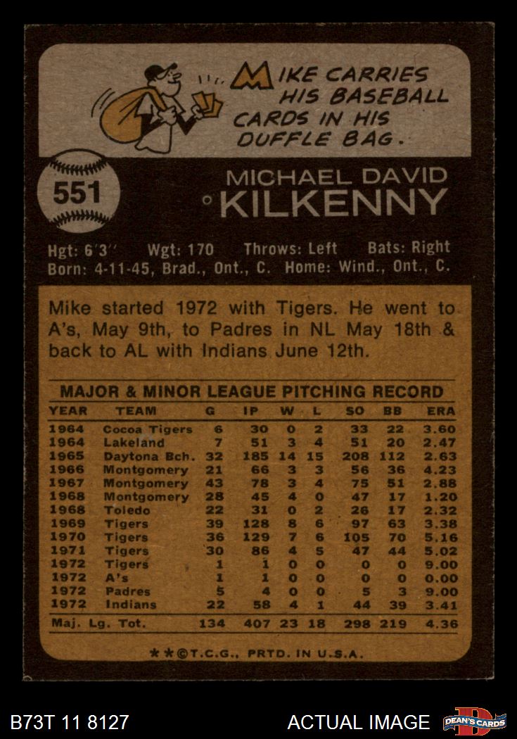 1973 Topps #551 Mike Kilkenny 6 - EX/MT