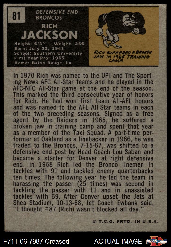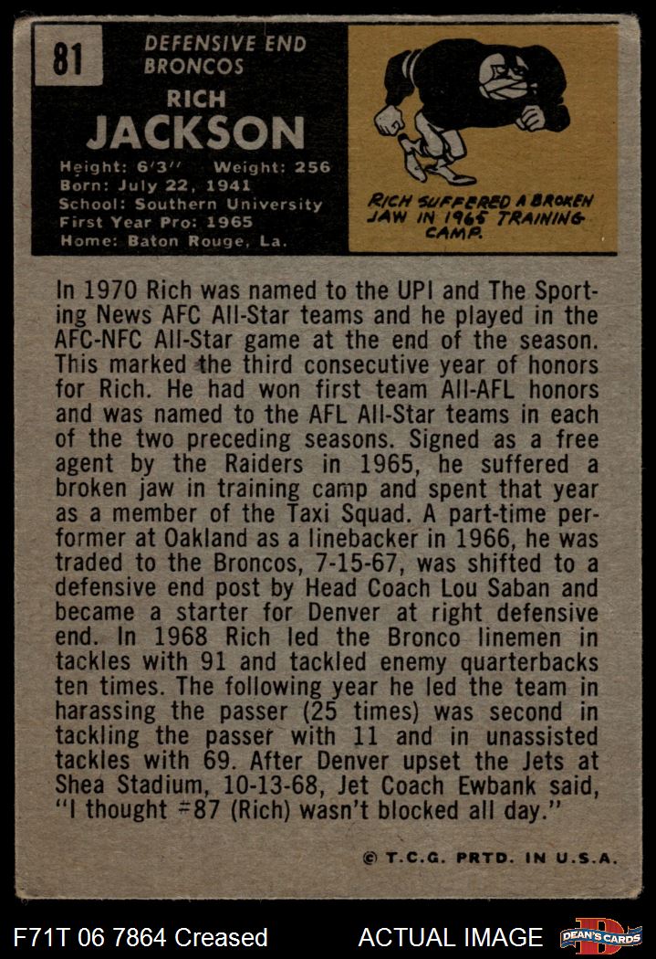1971 Topps #81 Rich Jackson 2 - GOOD