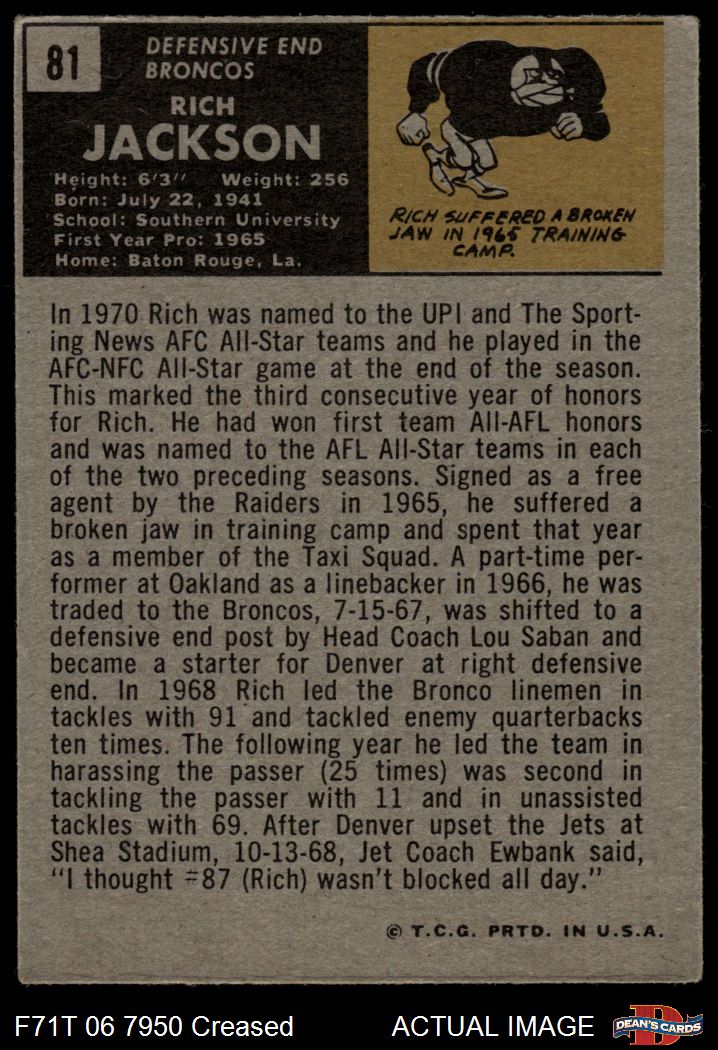 1971 Topps #81 Rich Jackson Front Thumbnail