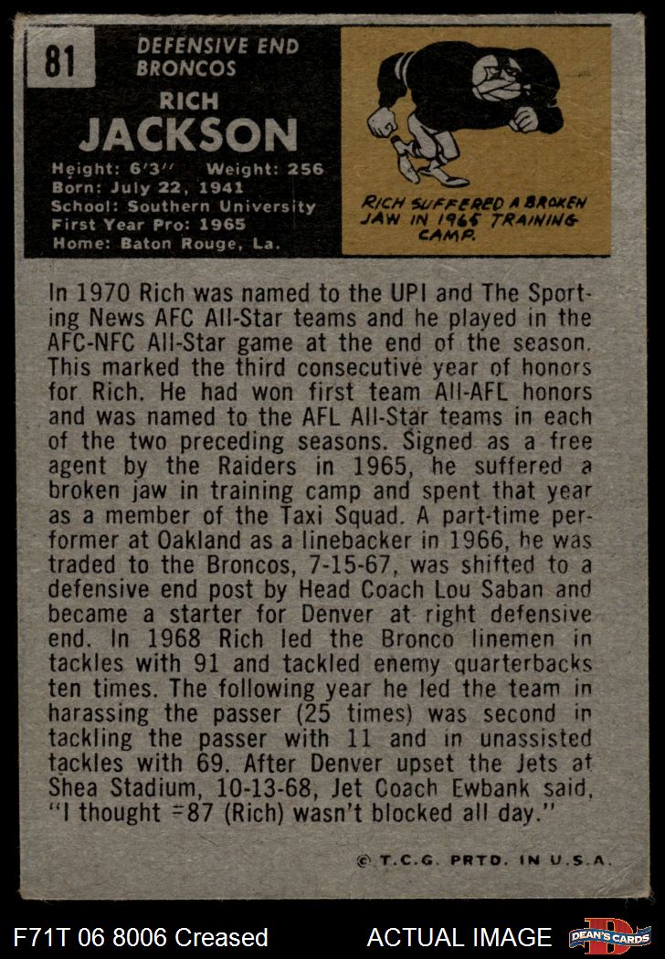 1971 Topps #81 Rich Jackson 2.5 - GD+