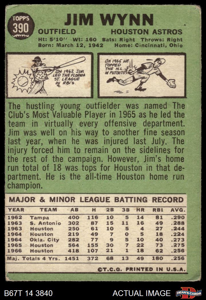 1967 Topps #390 Jim Wynn 1.5 - FAIR