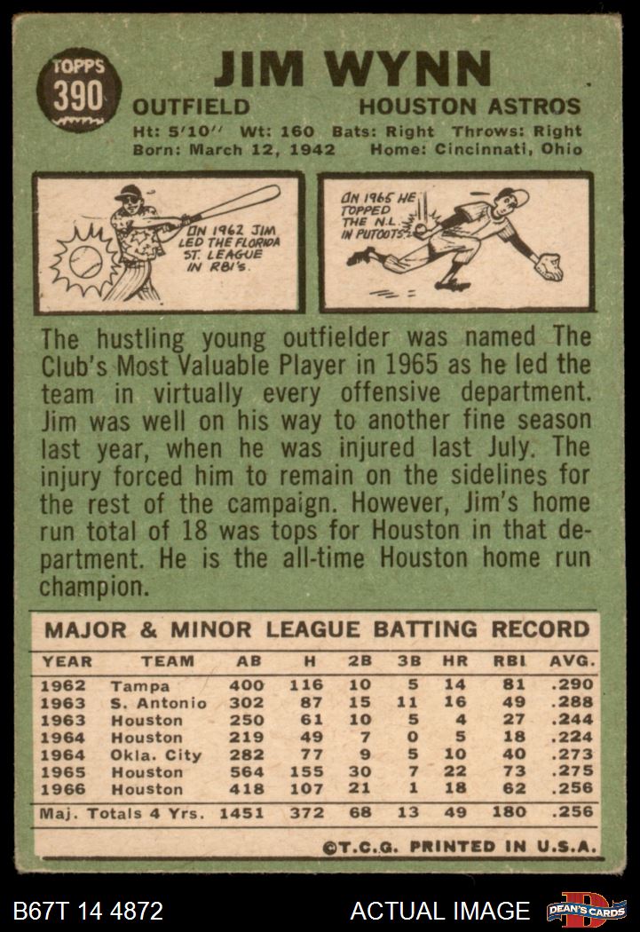 1967 Topps #390 Jim Wynn 2 - GOOD