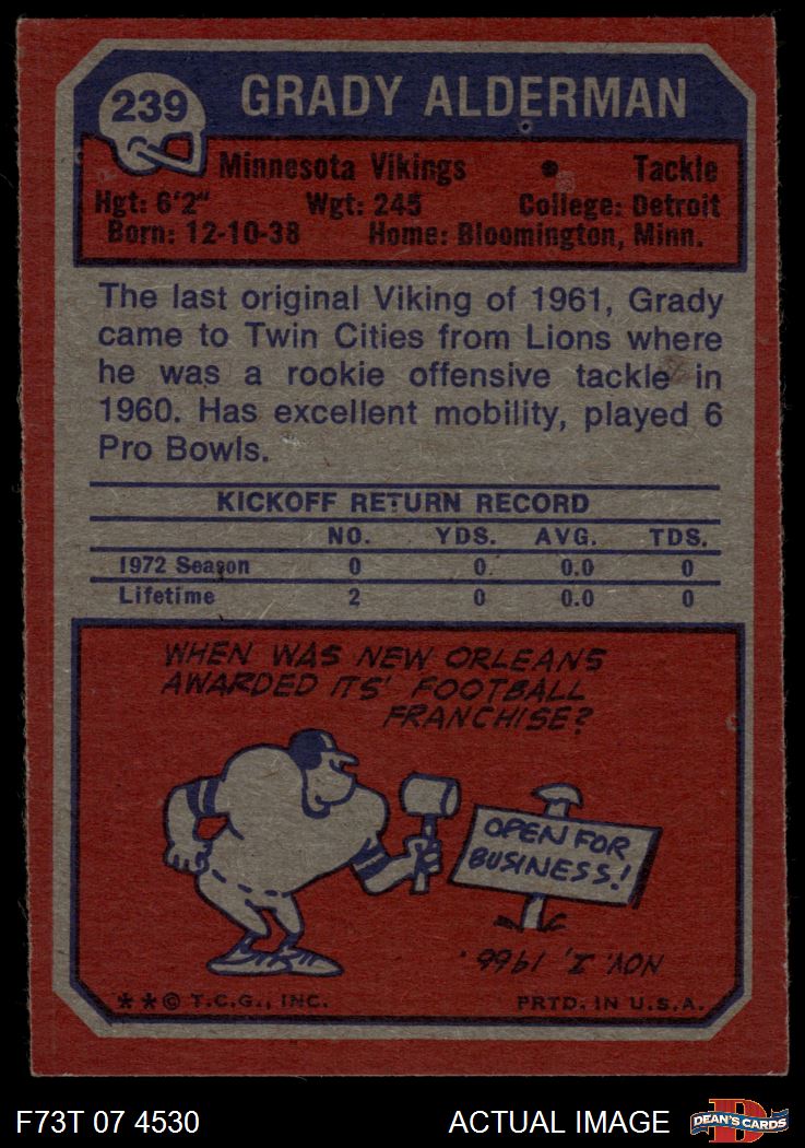 1973 Topps #239 Grady Alderman 4 - VG/EX