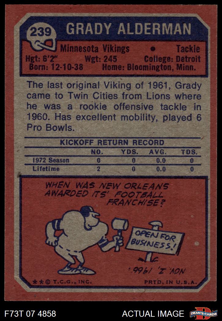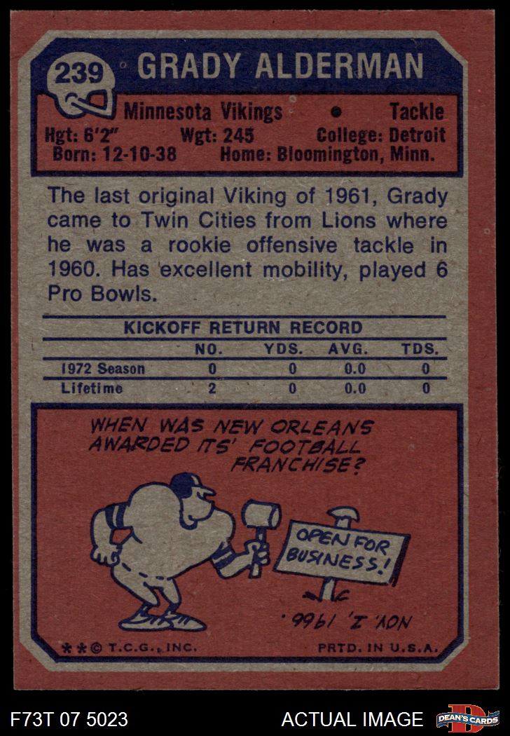 1973 Topps #239 Grady Alderman 7 - NM