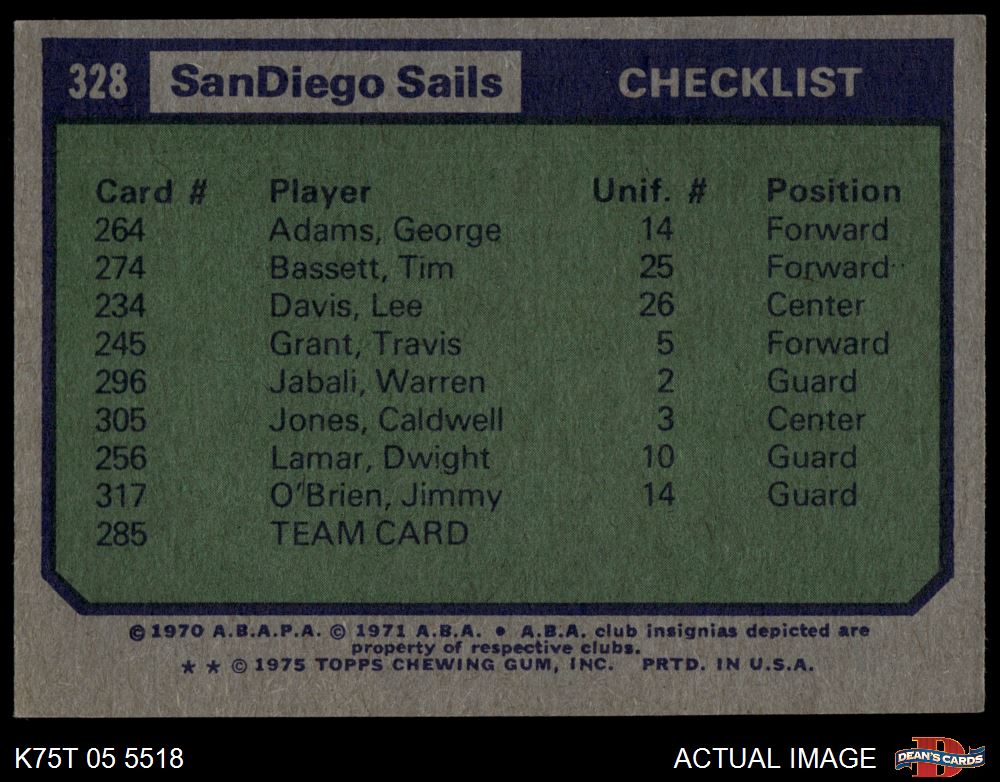 1975 Topps #328 San Diego Sails 4 - VG/EX