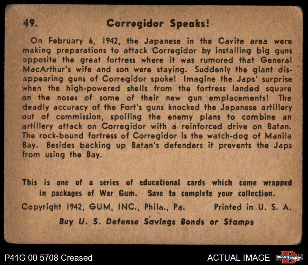 1941 War Gum #49 Corregidor Speaks 1.5 - FAIR