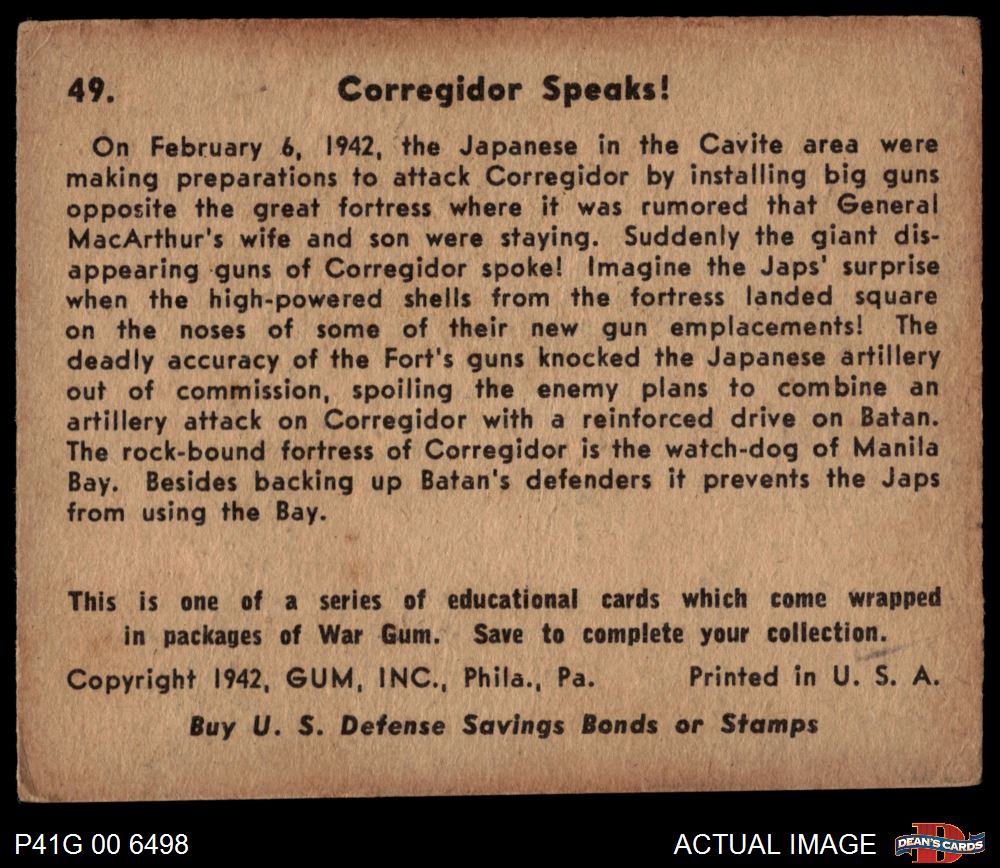 1941 War Gum #49 Corregidor Speaks 2 - GOOD