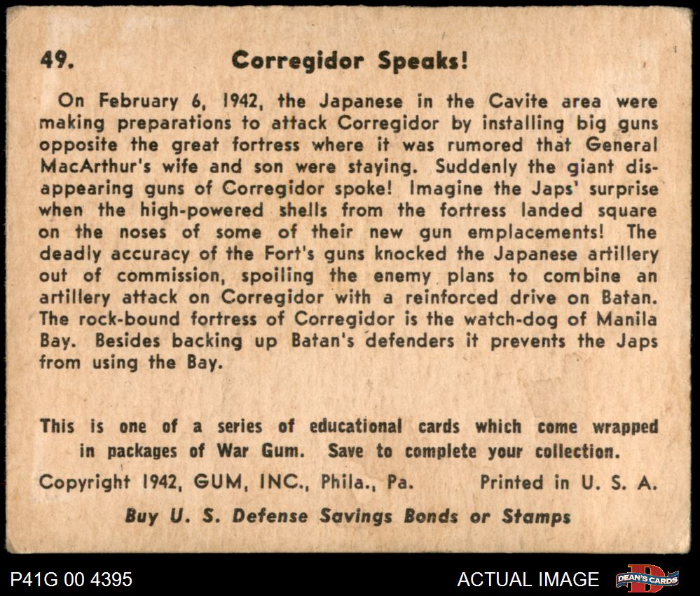 1941 War Gum #49 Corregidor Speaks 3 - VG