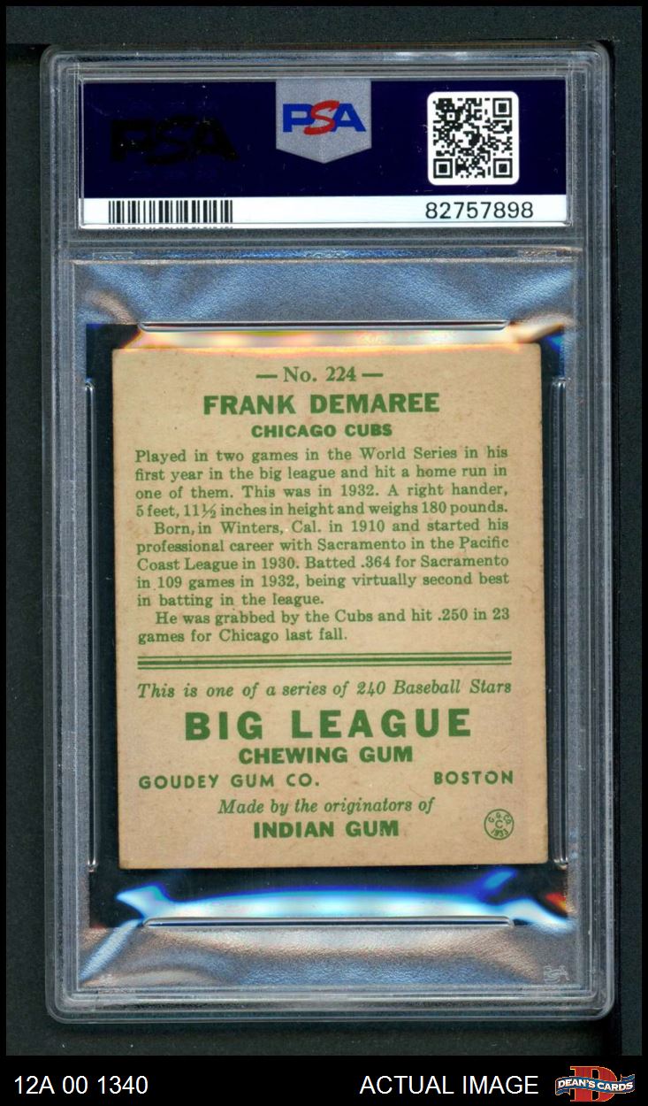 1933 Goudey #224 Frank Demaree PSA 4 - VG/EX