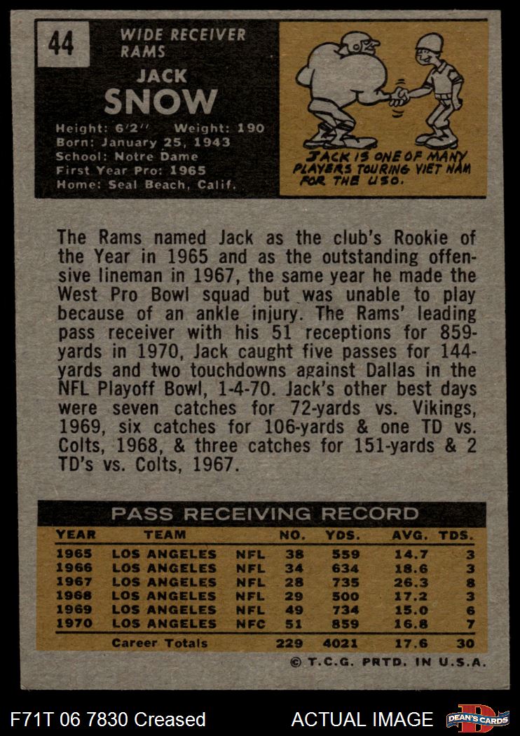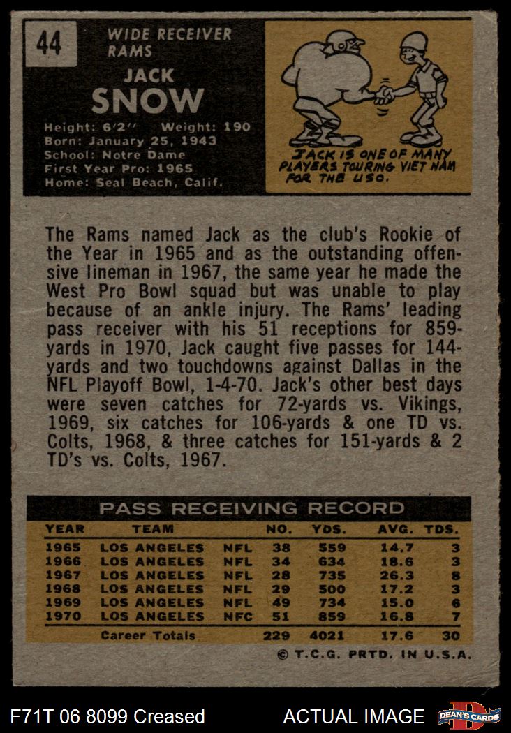 1971 Topps #44 Jack Snow 3 - VG