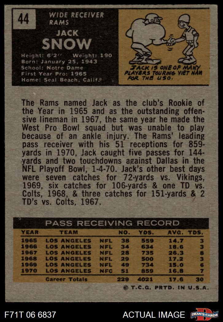 1971 Topps #44 Jack Snow 4 - VG/EX