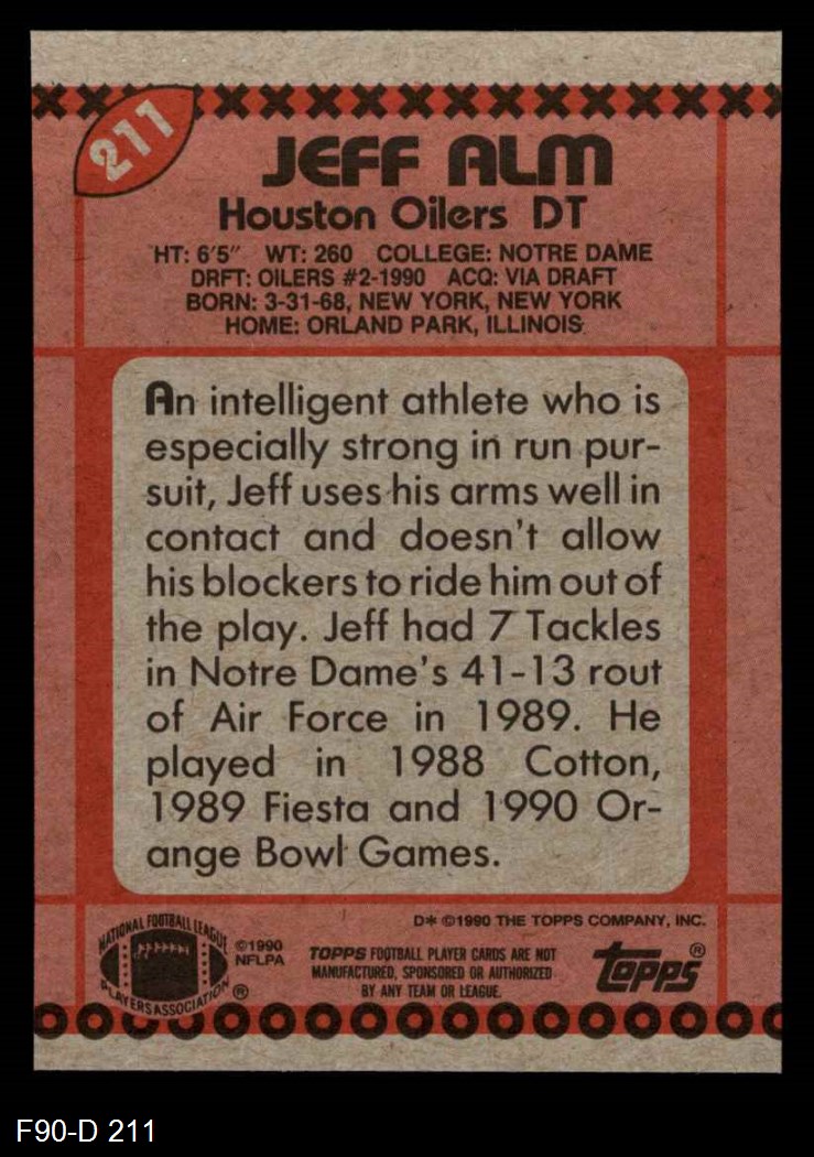 1990 Topps #211 Jeff Alm 8 - NM/MT
