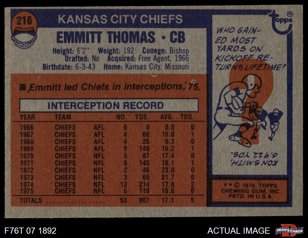 1976 Topps #216 Emmitt Thomas 5 - EX