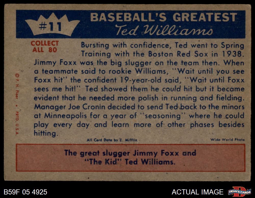 1959 Fleer #11 - Ted Williams 1st Spring Training 4 - VG/EX