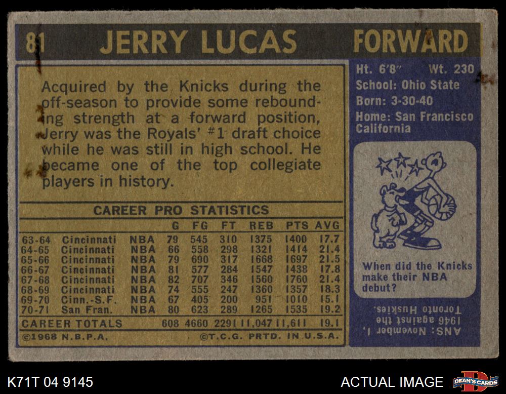 1971 Topps #81 Jerry Lucas 2.5 - GD+