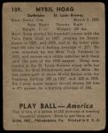 1939 Play Ball #109 Myril Hoag Front Thumbnail