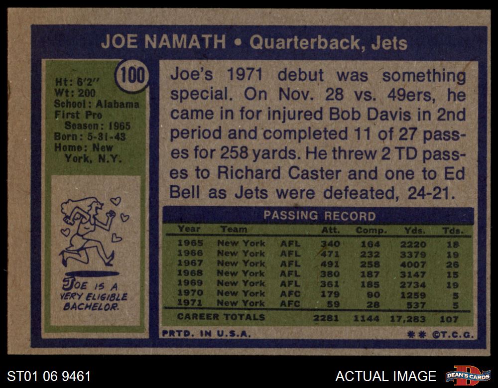 1972 Topps #100 Joe Namath