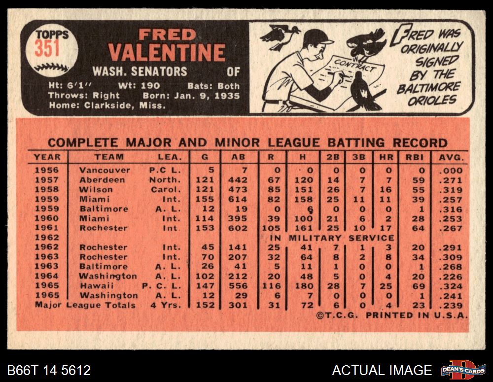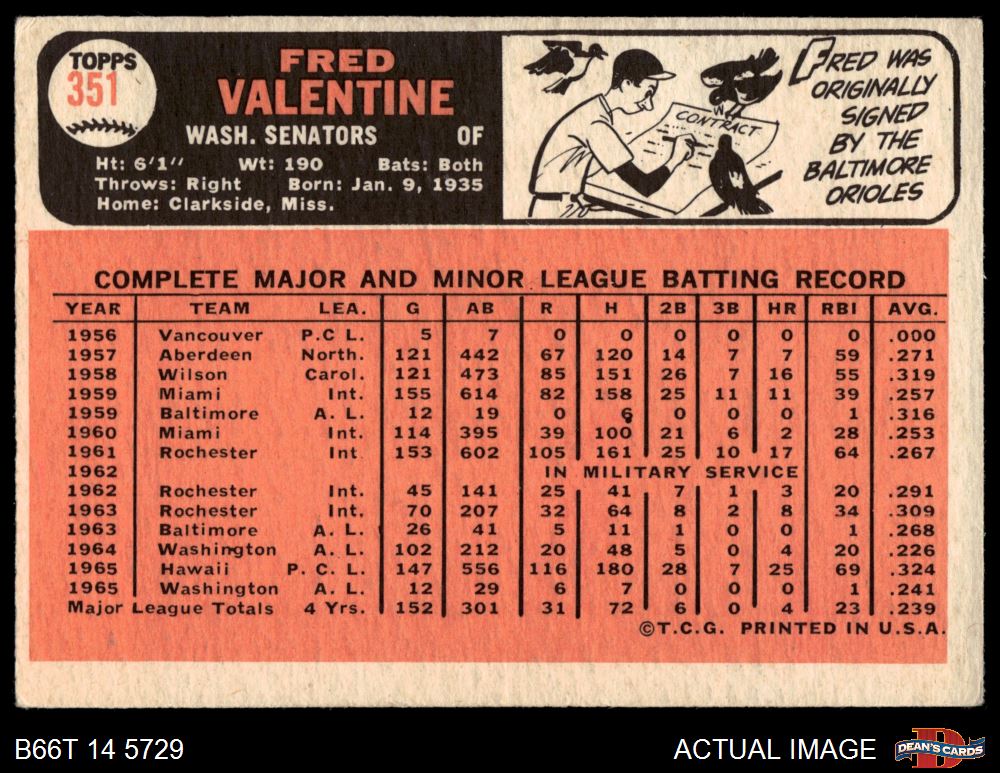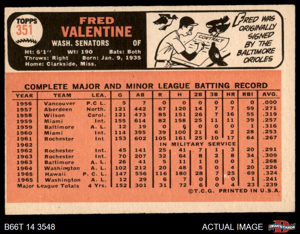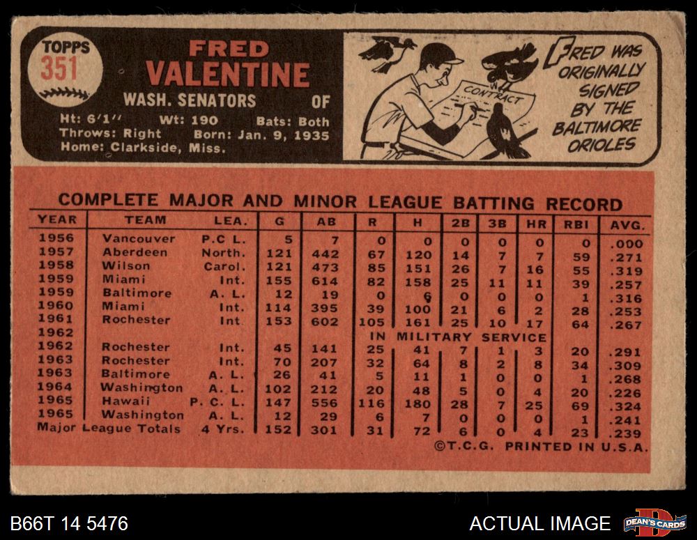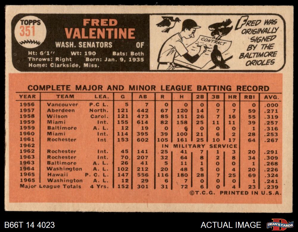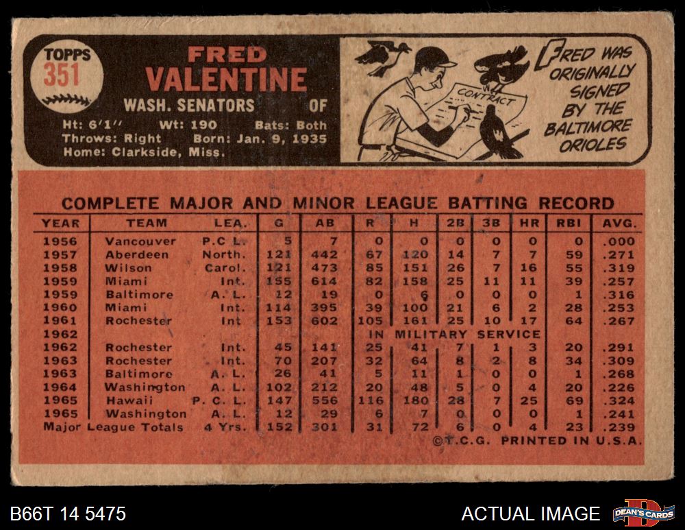 1966 Topps #351 Fred Valentine