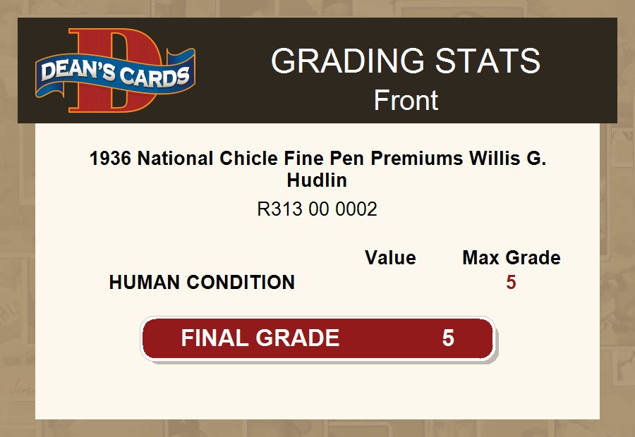 1936 National Chicle Fine Pen Premiums Willis G. Hudlin 5 - EX