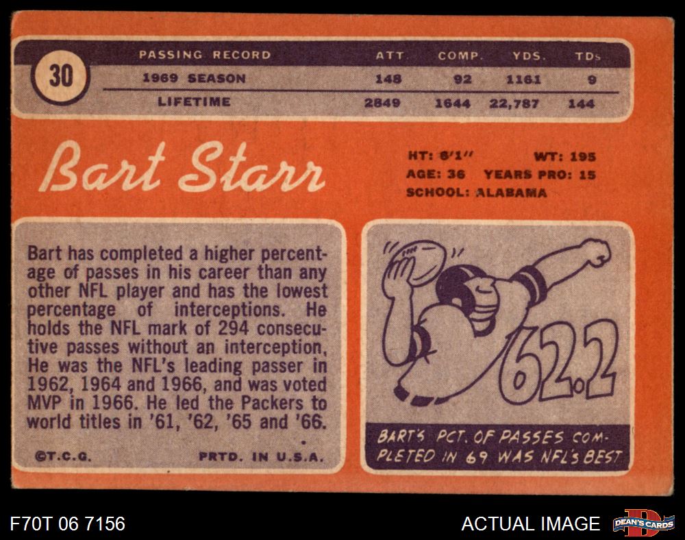 1970 Topps #30 Bart Starr 2 - GOOD