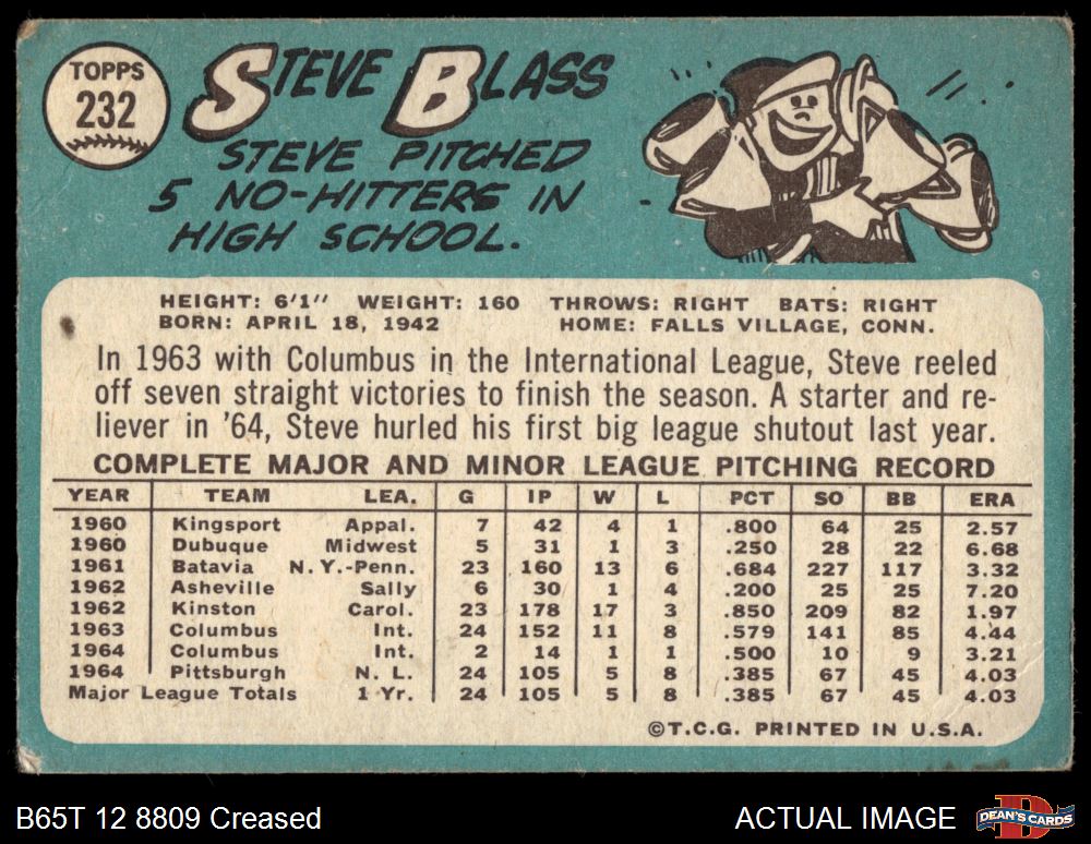 1965 Topps #232 Steve Blass 1.5 - FAIR