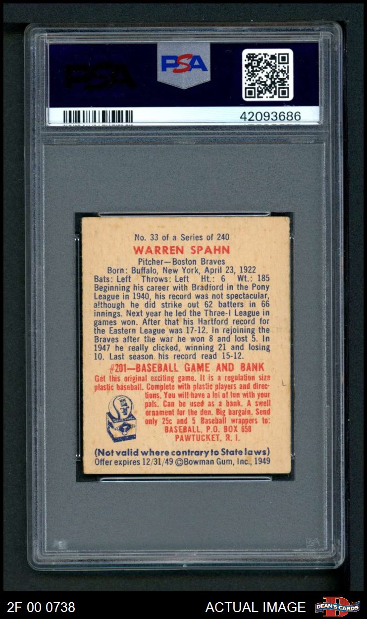 1949 Bowman #33 Warren Spahn PSA 4 - VG/EX