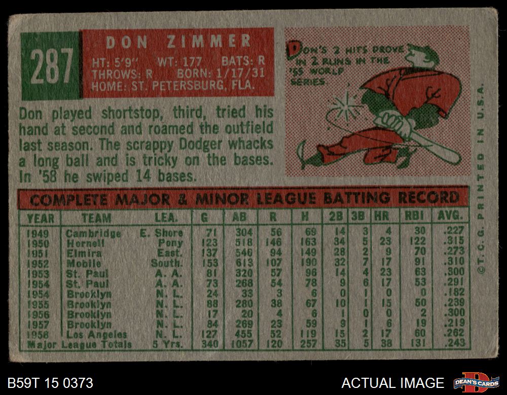 1959 Topps #287 Don Zimmer 2 - GOOD