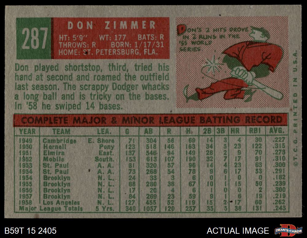 1959 Topps #287 Don Zimmer 4 - VG/EX