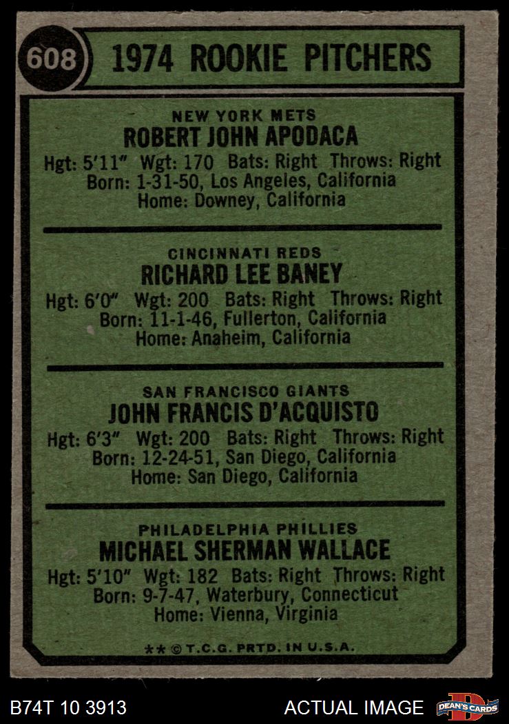 1974 Topps #608 COR Rookie Pitchers