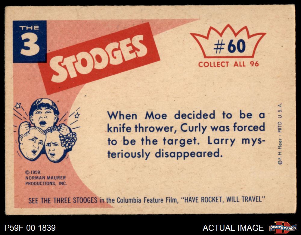 1959 Fleer Three Stooges #60 Betcha 8 to 5 You Miss Me Again