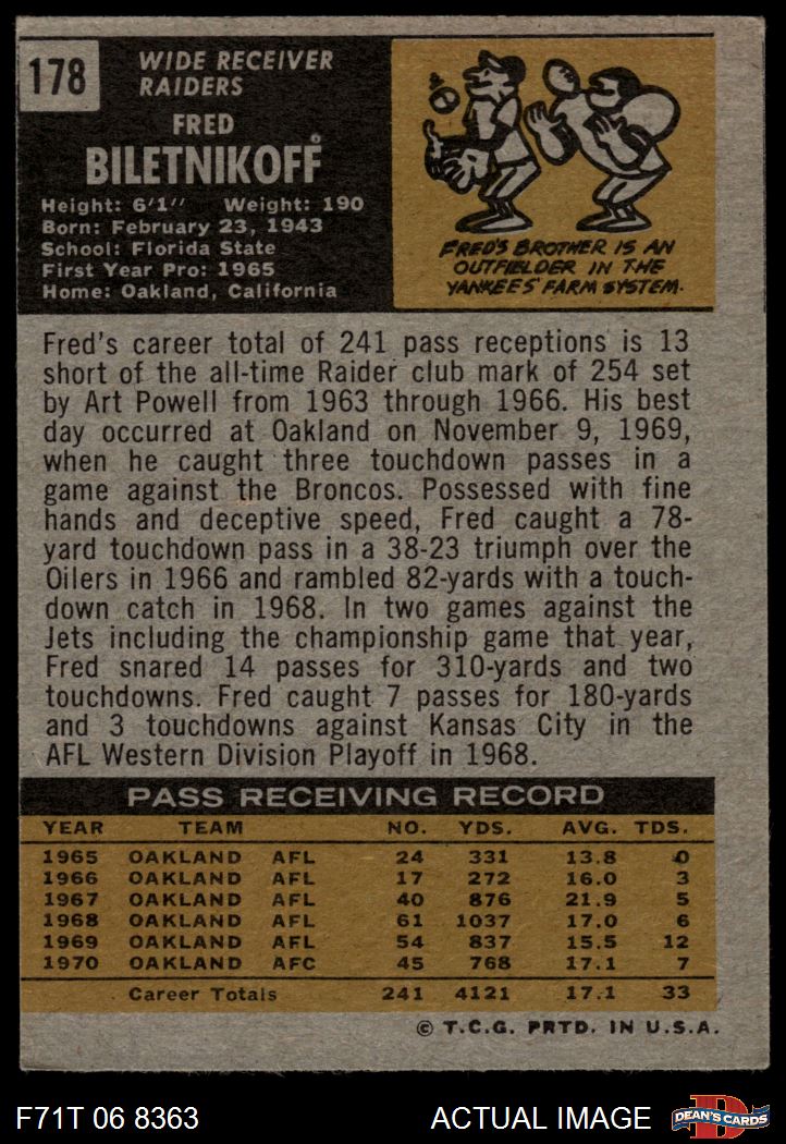 1971 Topps #178 Fred Biletnikoff 3 - VG