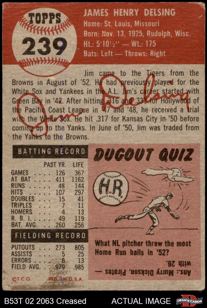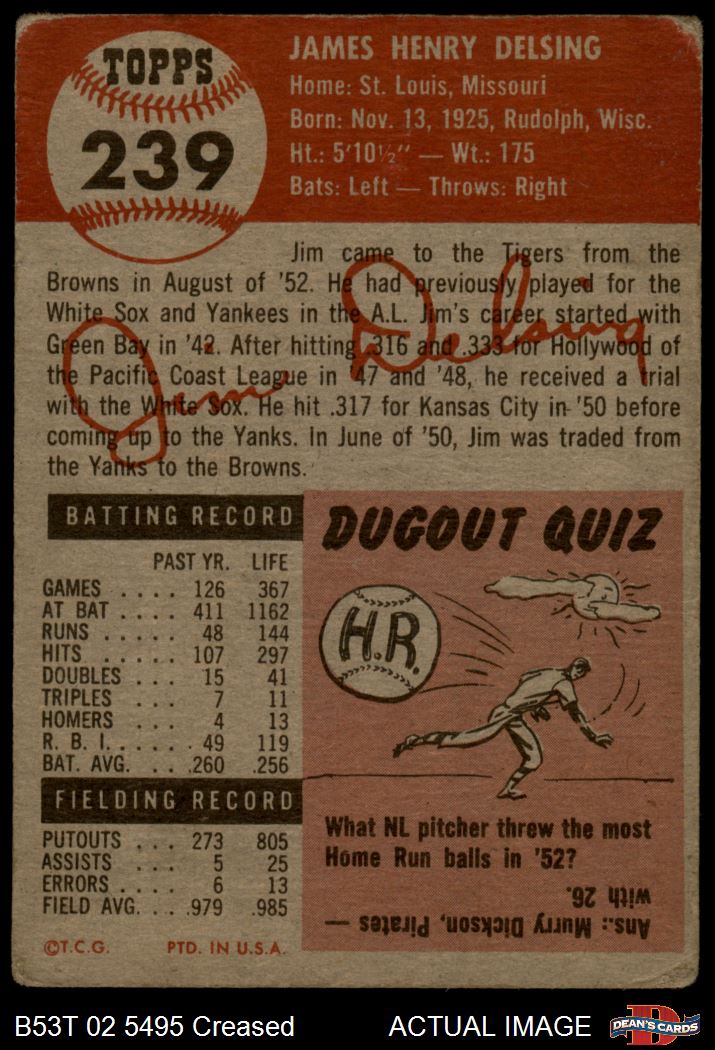 1953 Topps #239 Jim Delsing 2 - GOOD