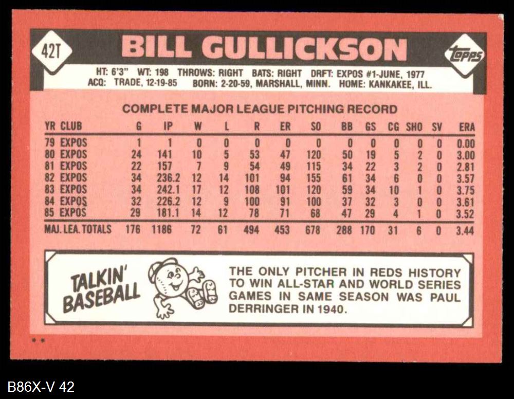 1986 Topps Traded #42 T Bill Gullickson