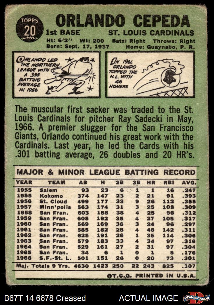 1967 Topps #20 Orlando Cepeda 1 - POOR