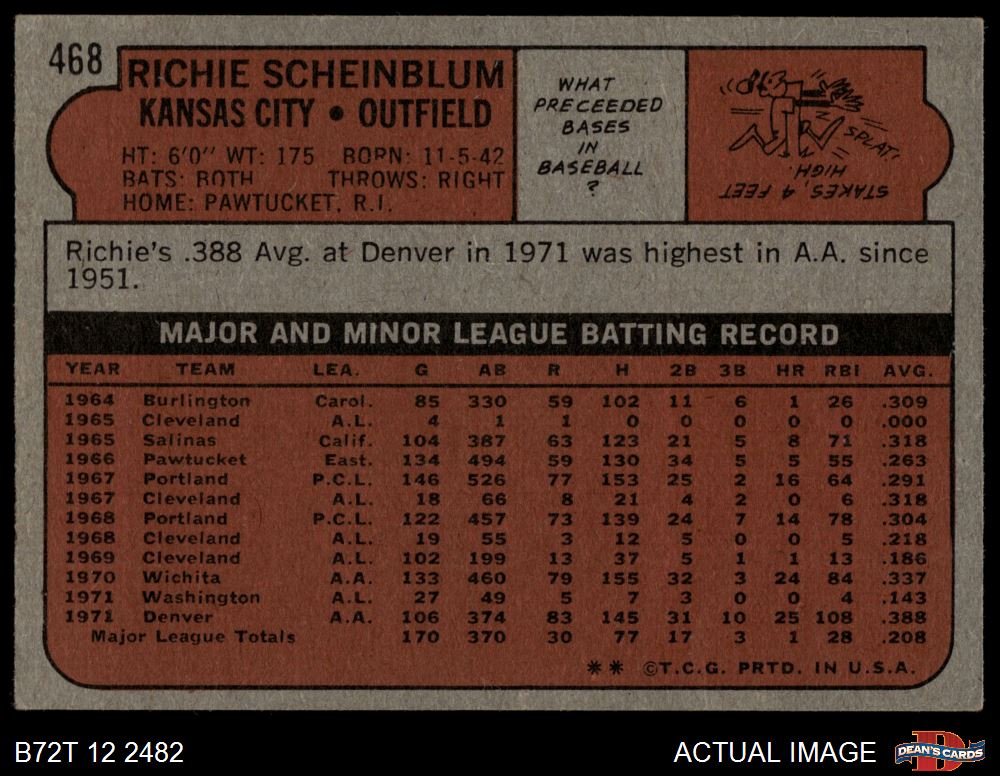 1972 Topps #468 Richie Scheinblum 3 - VG
