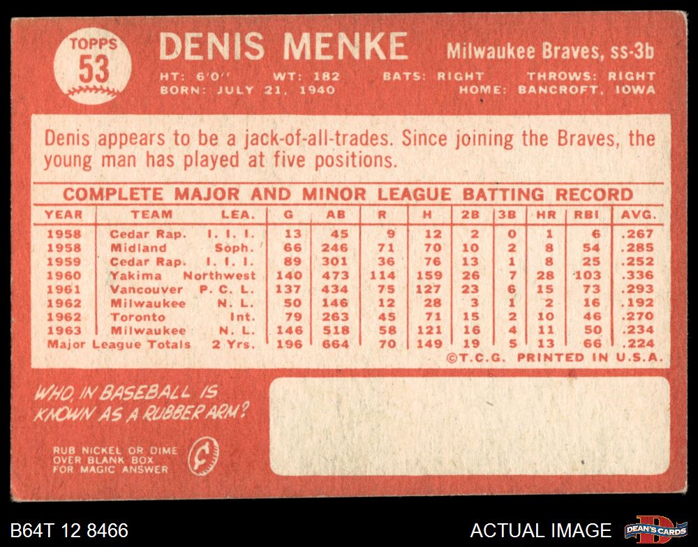 1964 Topps #53 Denis Menke
