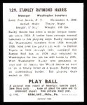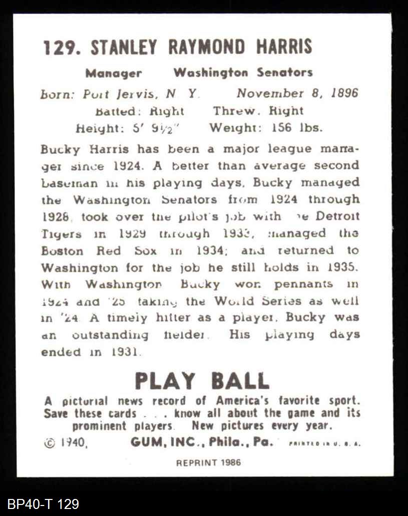 1940 Play Ball Reprint #129 Bucky Harris 8 - NM/MT