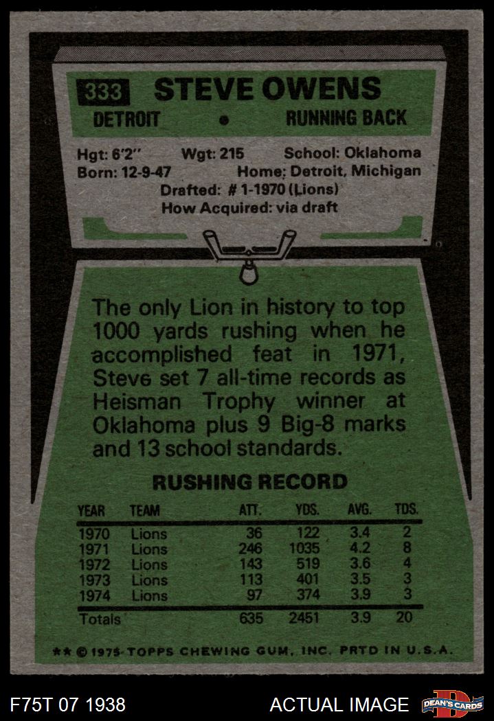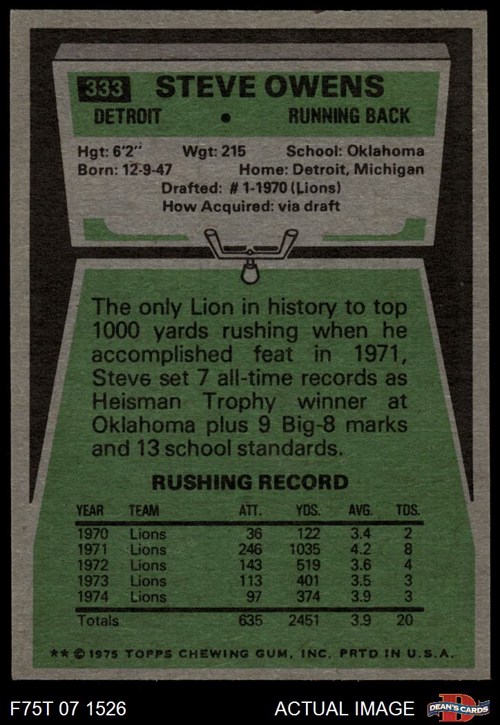 1975 Topps #333 Steve Owens