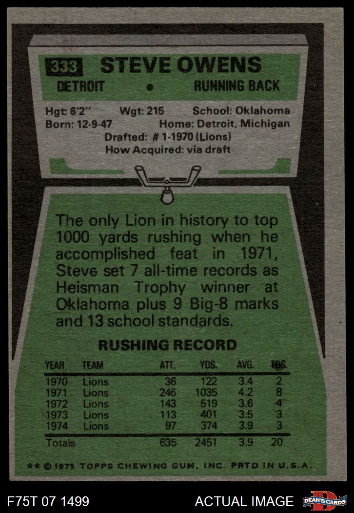 1975 Topps #333 Steve Owens 4 - VG/EX