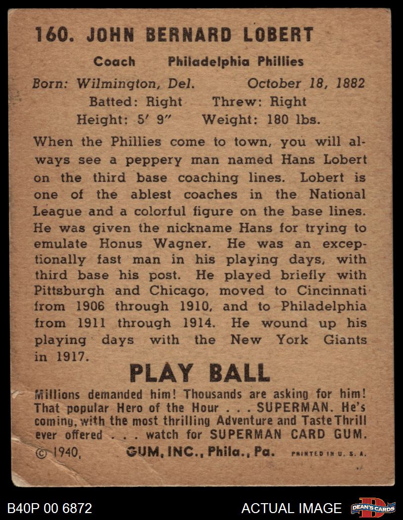 1940 Play Ball #160 Hans Lobert 1.5 - FAIR