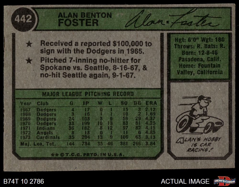 1974 Topps #442 Alan Foster