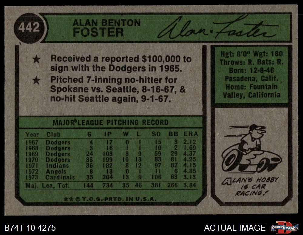 1974 Topps #442 Alan Foster 3.5 - VG+
