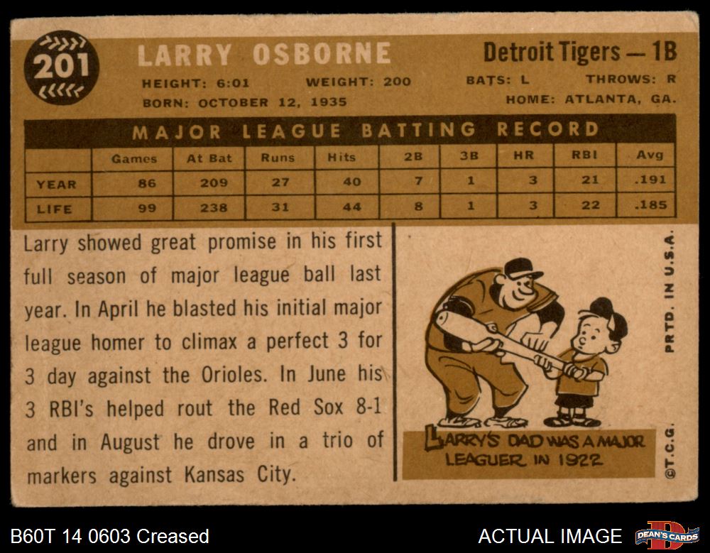 1960 Topps #201 Larry Osborne 1.5 - FAIR