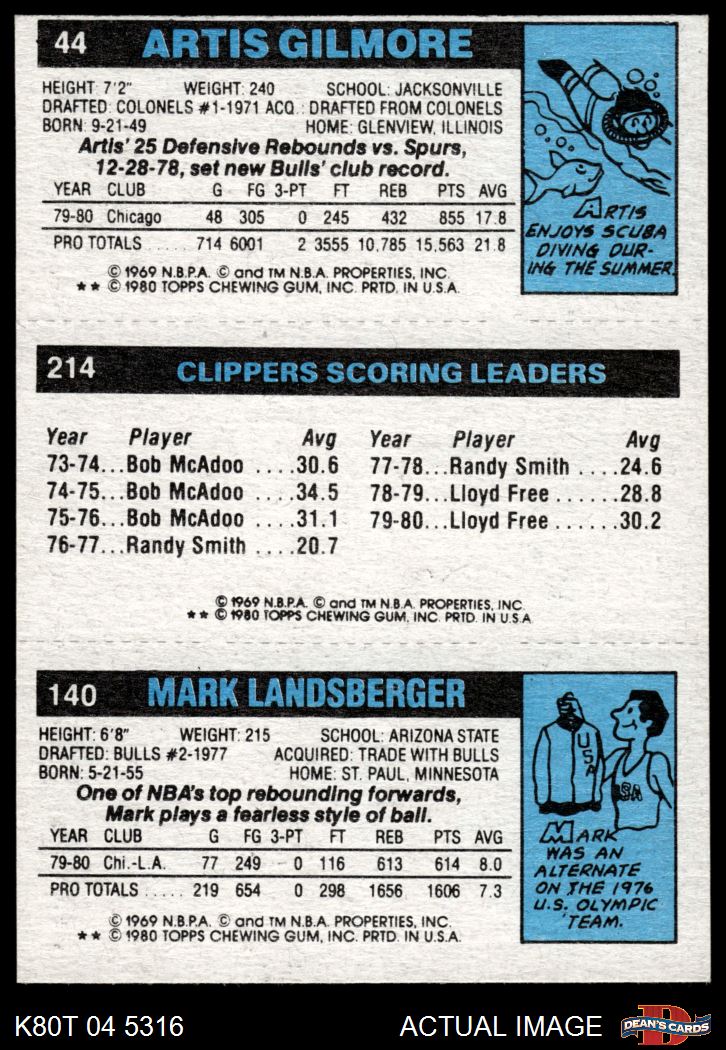 1980 Topps - Mark Landsberger / World B. Free / Artis Gilmore 140 / 214 / 44 6 - EX/MT